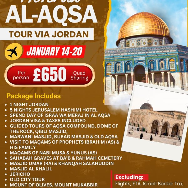 *Al Aqsa Compound, *Old City Tour, *Maqams of Prophets, *Sahabah Graves, *Masjid Omar, *Masjid Al Khalil, *Mount Mukkabir, *Mount of Olives and Other Site’s