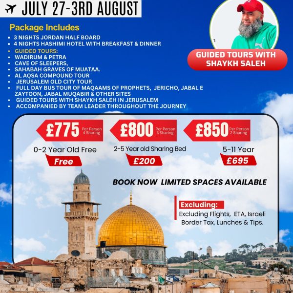 *Al Aqsa Compound, *Old City Tour, *Maqams of Prophets, *Sahabah Graves, *Masjid Omar, *Masjid Al Khalil, *Mount Mukkabir, *Mount of Olives and Other Site’s