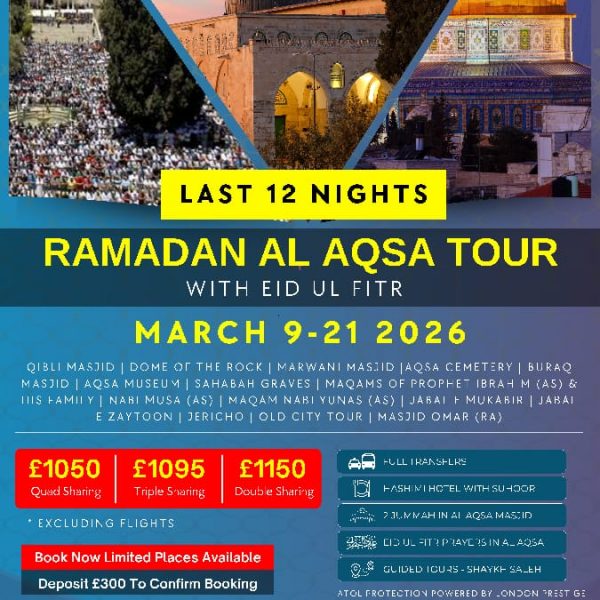 This will be a very busy day in Al Quds so we recommended to get ready early & go for Jummah around 11:00am Insha’Allah.